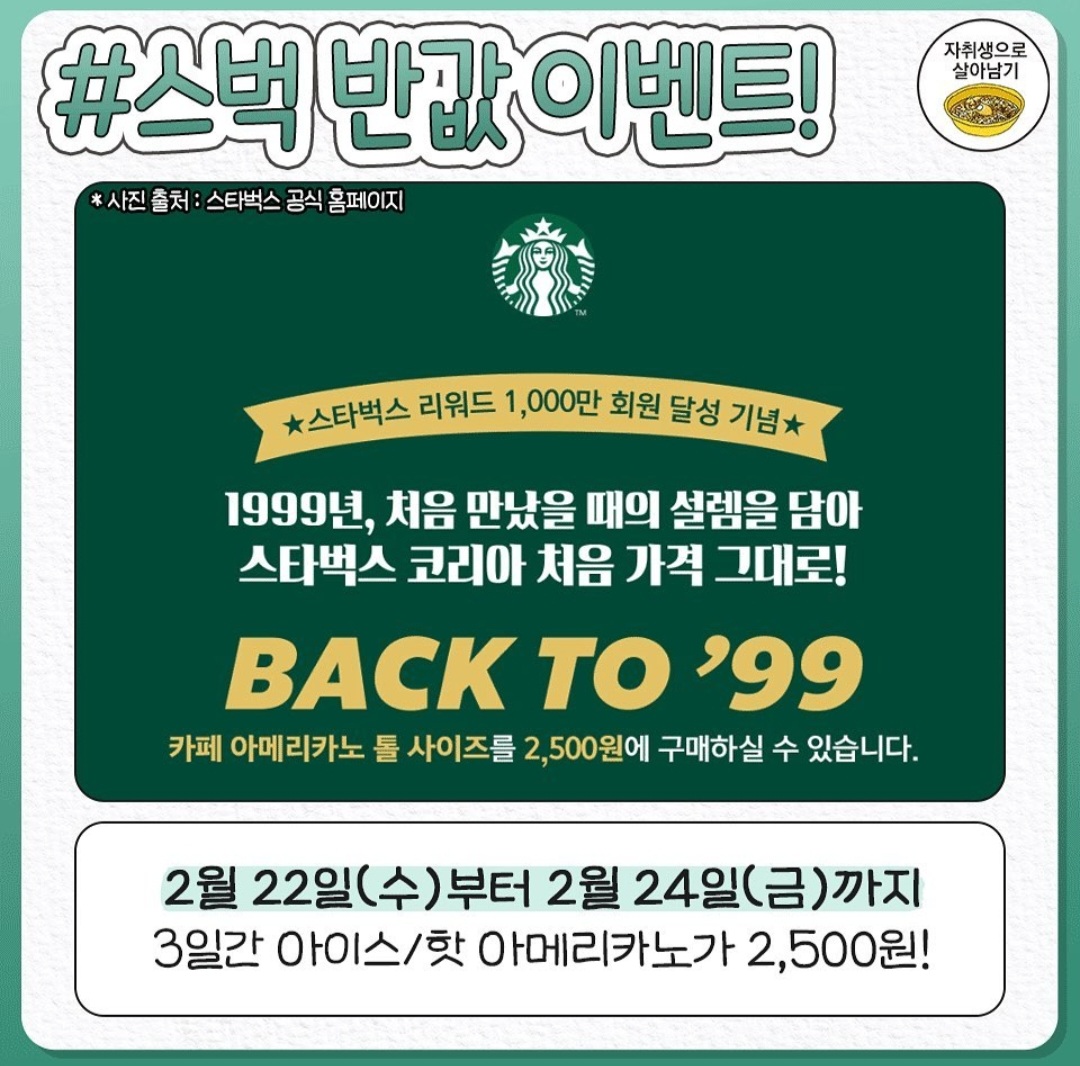2023년 2월 22일 수요일부터 2023년 2월 24일 금요일까지 스타벅스에서