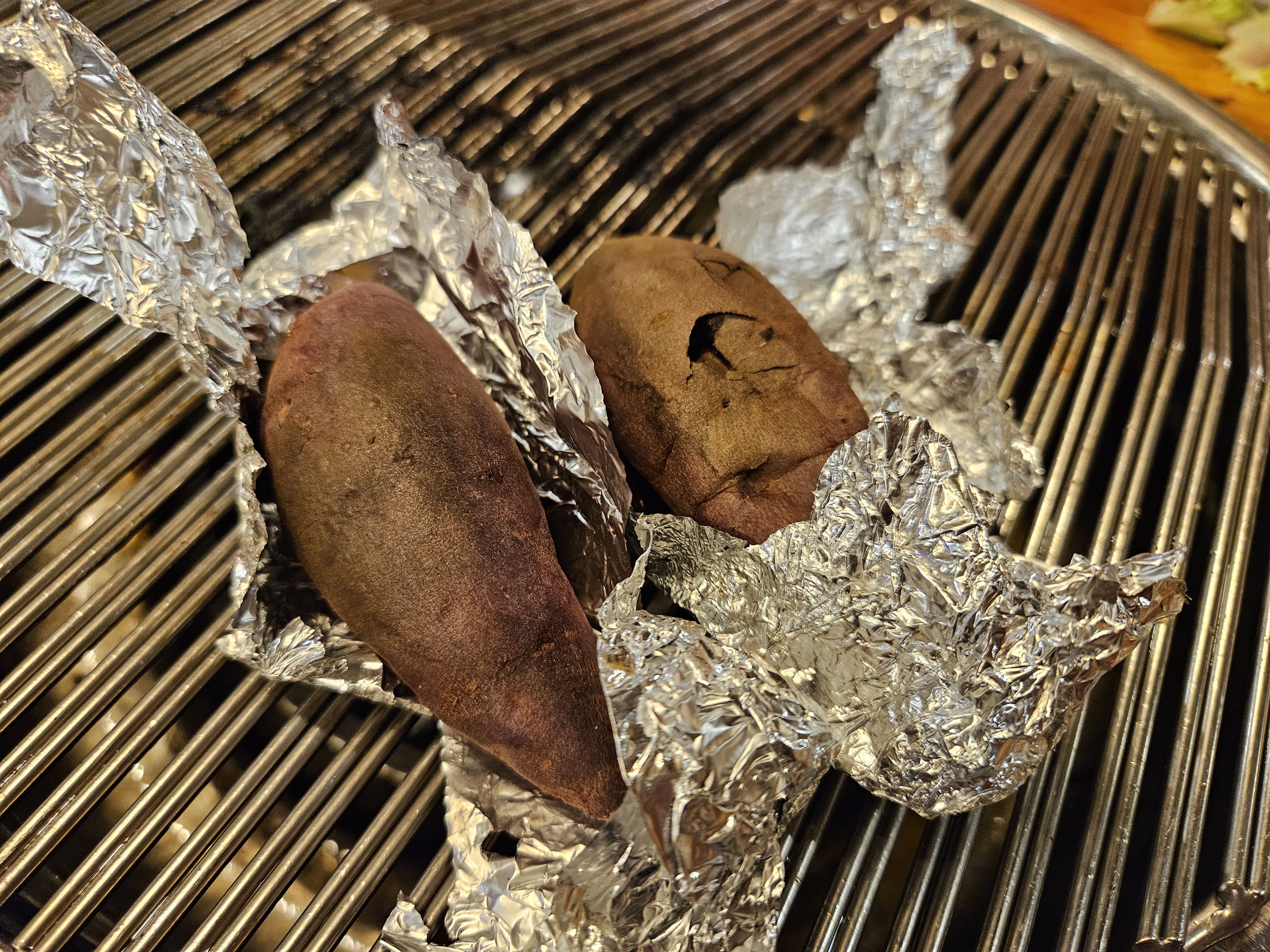 고구마는 숯불에 구울 때 가장 맛있습니다.
