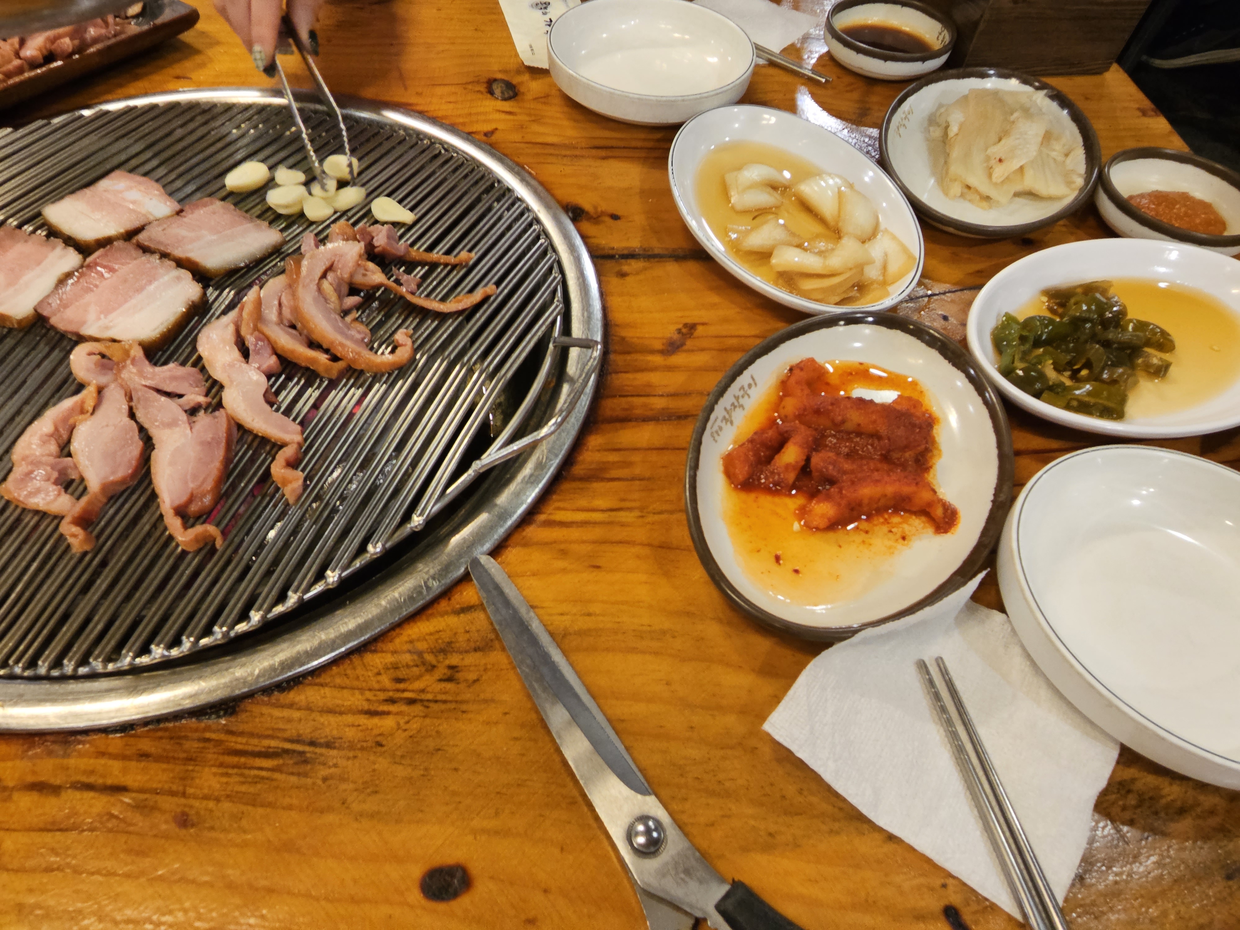 삼겹살과 오리 장작구이의 맛을 모두 맛볼 수 있어서 좋다.