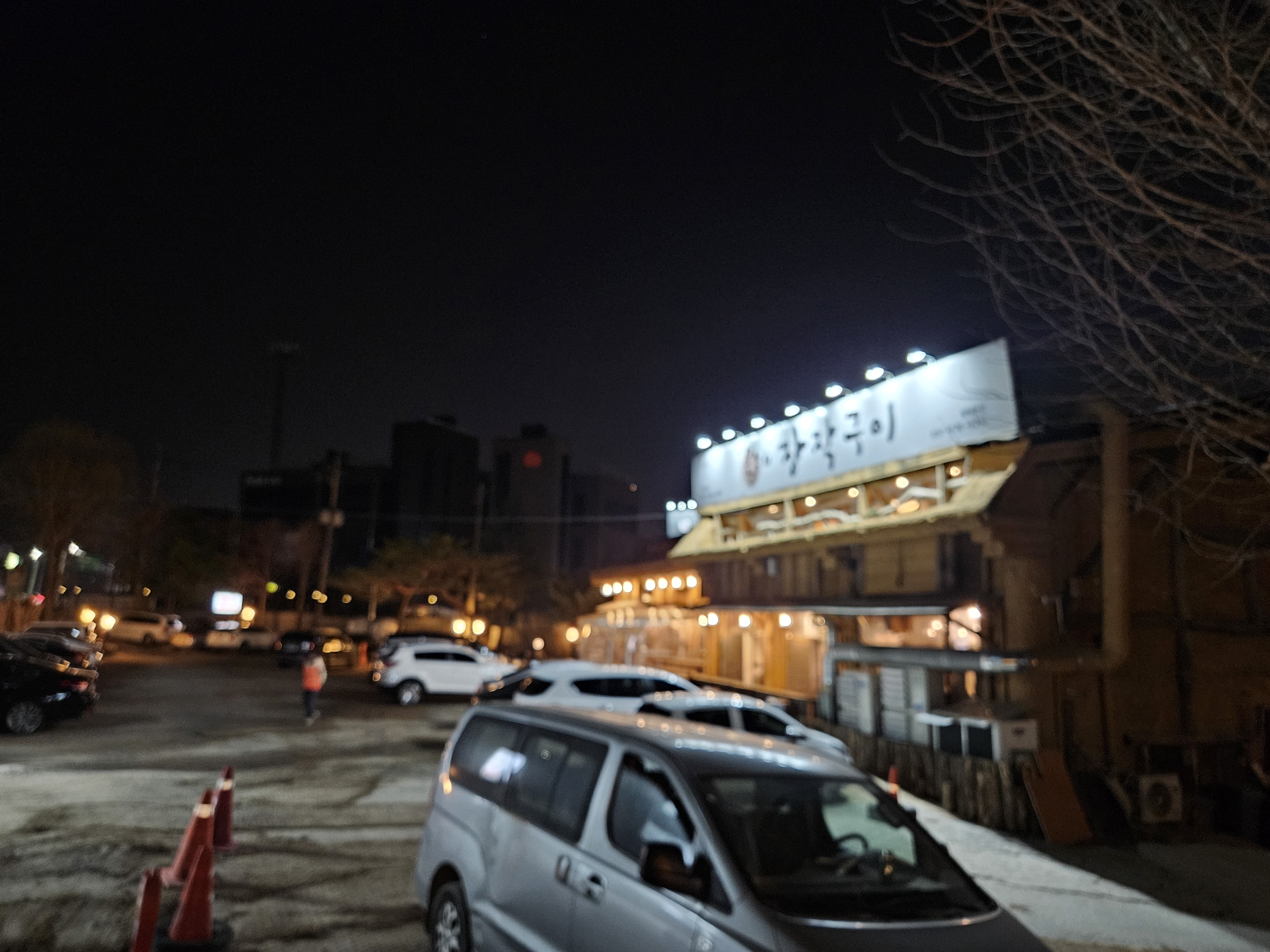 식당 앞에 넓은 주차장이 있고, 온누리쭈꾸미도 그 옆으로 산책을 나갑니다.