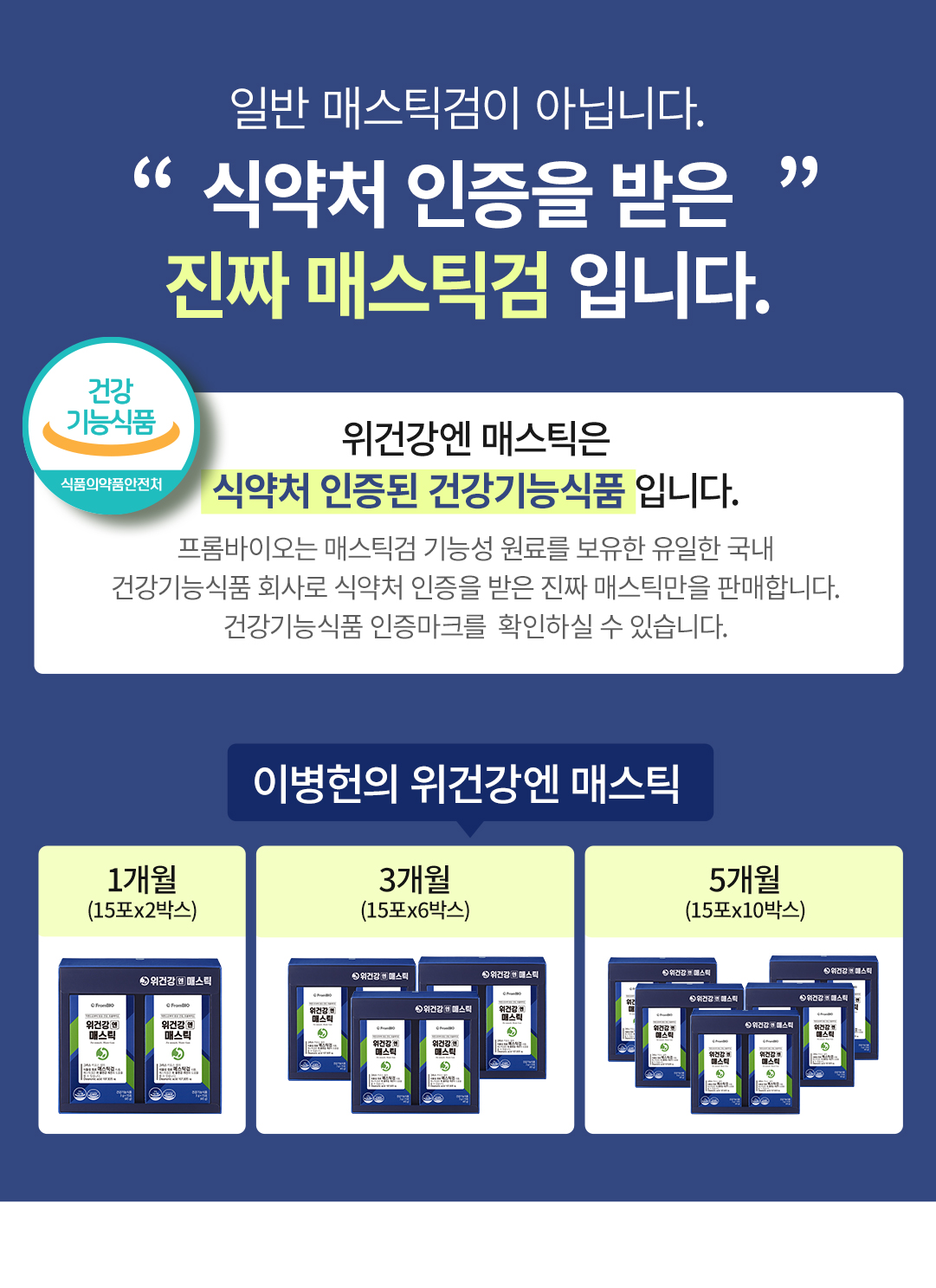 위 건강 엠머스틱은 매스틱 껌 하루 섭취 권장량 100%를 1일 1포 섭취할 수 있다고 합니다!
