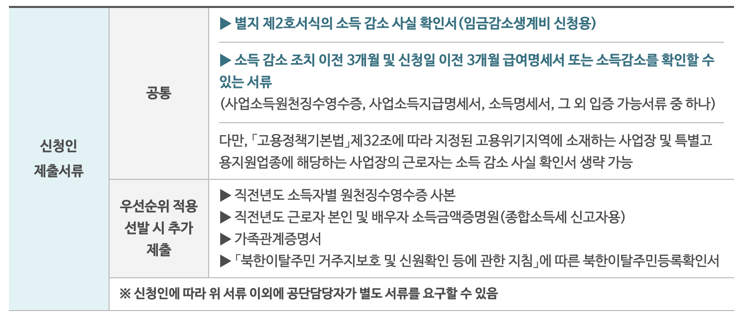 • 고용인이 속한 사업장의 운영구조상 소득상실로 인한 생계유지를 위한 경비 등