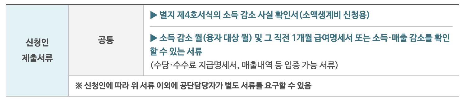 • 소득이 감소한 달이 급여생활자금 대출 신청 전 3개월과 겹치지 않아야 합니다.