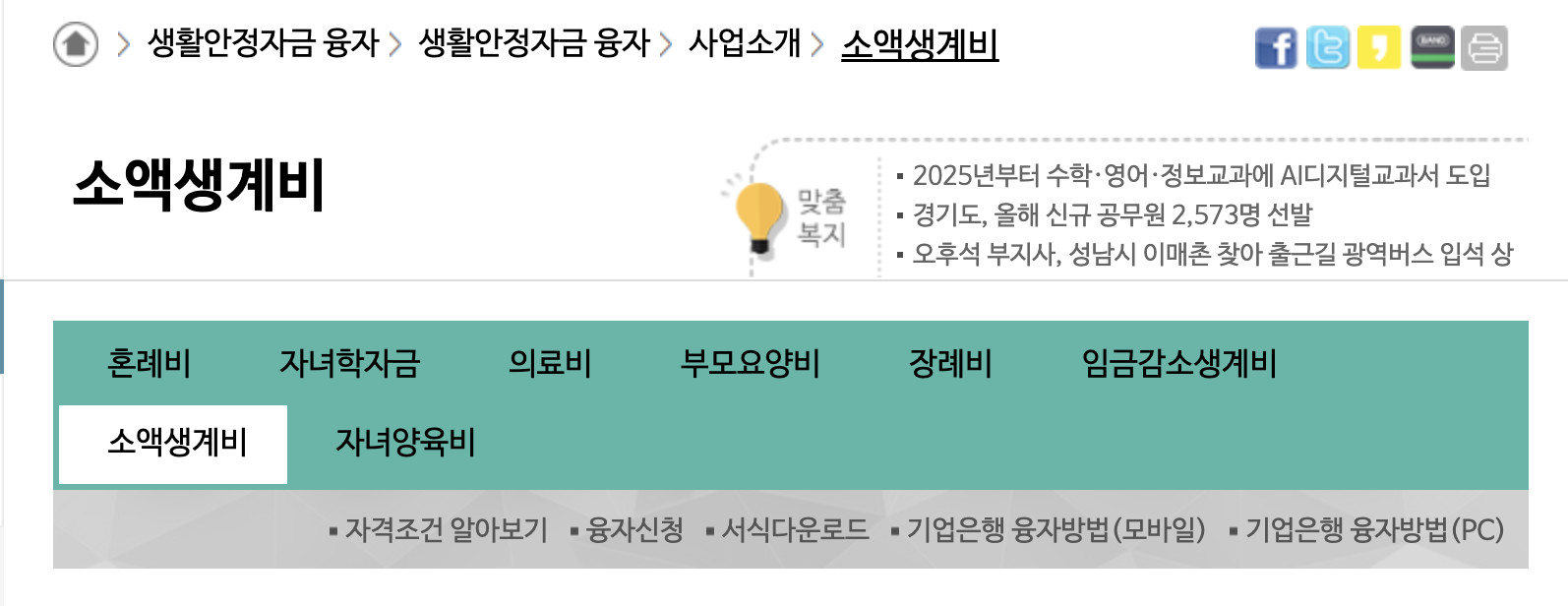 • 소득감소대출 신청대상이 되는 월소득은 중위소득의 2/3에 해당하는 금액의 70% 이하이어야 합니다.